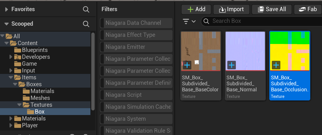 In Unreal, drag your exported textures into the Content Browser.