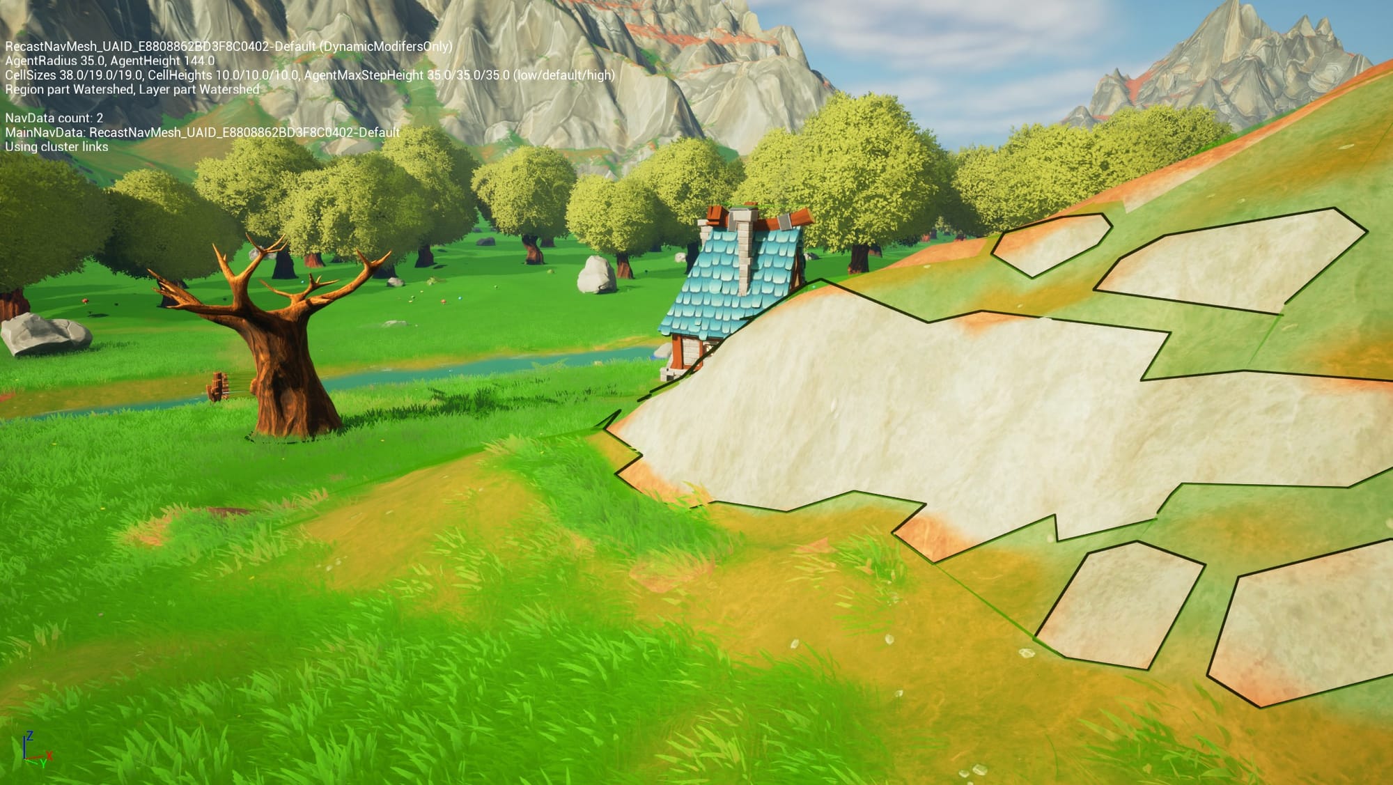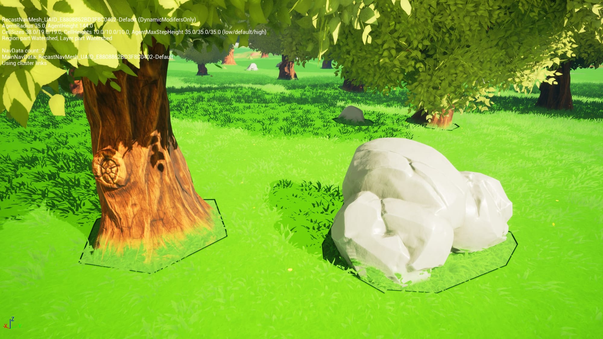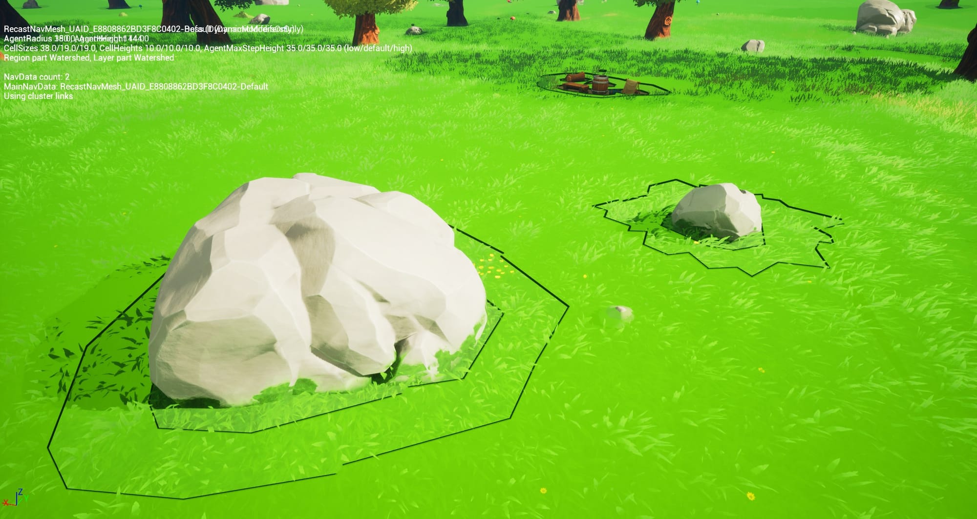The size of an actor is what decides if they can fit on the nav mesh, so the nav mesh needs to know how big the agents it supports are. Because our nav mesh was made for our smaller monsters, it causes the big Spider Queen to get stuck on obstacles, thinking it can fit in gaps where she obviously can’t.